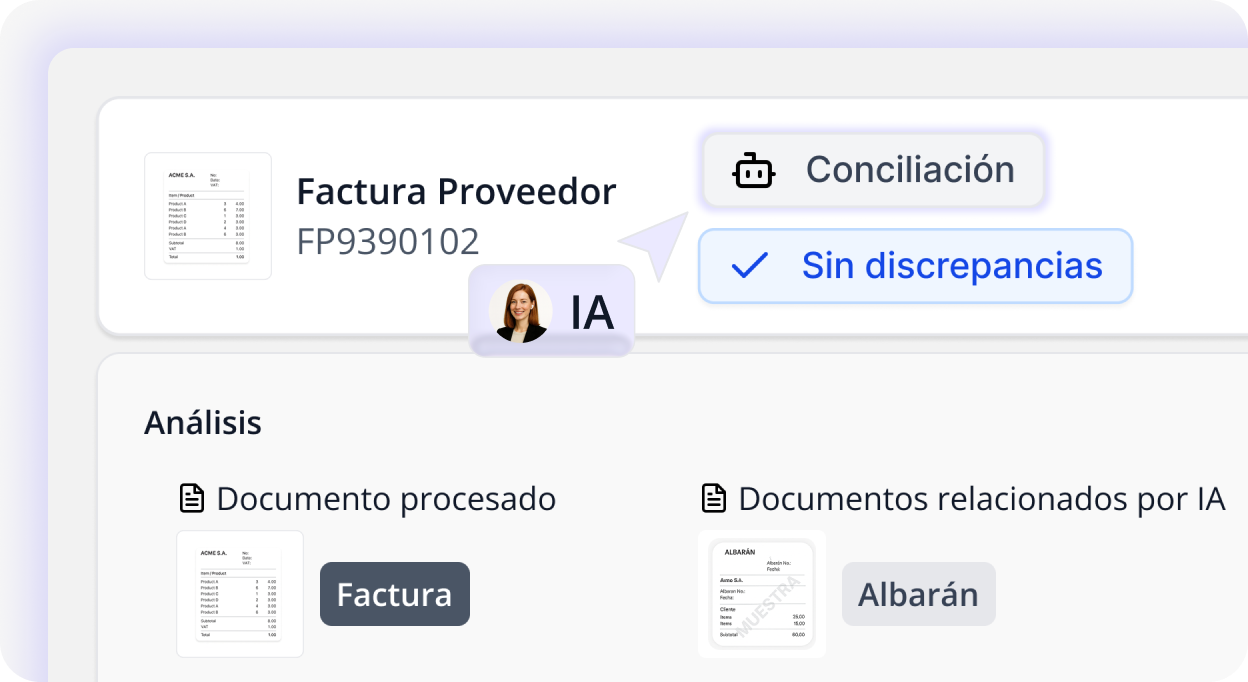 Verifica a sua caixa de entrada, extrai as facturas sem que tenha de intervir e cruza-as instantaneamente com as notas de entrega correspondentes. Numa questão de segundos, detecta quaisquer discrepâncias entre documentos, tais como preços incorrectos, encargos duplicados ou diferenças que normalmente passariam despercebidas. Assim, poupa tempo, evita erros dispendiosos e mantém as suas contas em ordem.